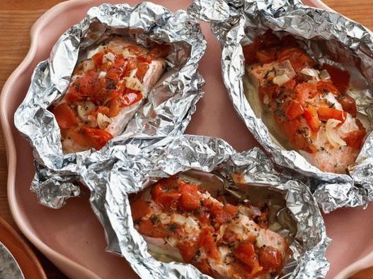 Tekerje a lazacot fóliába és süsse a sütőben egy egyszerű, lédús ételhez, amelyet külön-külön is felszolgálnak részeket. Recept: Paradicsommal sült lazac paradicsommal