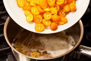 A tálba hozzá kell adni apróra vágott kumquatot, fedjük le, és tegyük félre az italt 10 percre.
