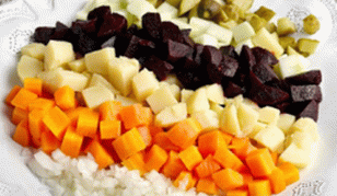 - Forraljon fel kabátban az összes zöldséget (a hagymát és az uborkát kivéve). Tedd le egy teáskanál céklaleves.