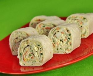 - Szétterítünk egy pita kenyérlapot és rátesszük egy tölteléket.