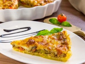 - Fedjük le egy réteg reszelt sajttal, és 180 ° C-ra melegítsük fel fokos sütőben főzzük kb. 25 percig.