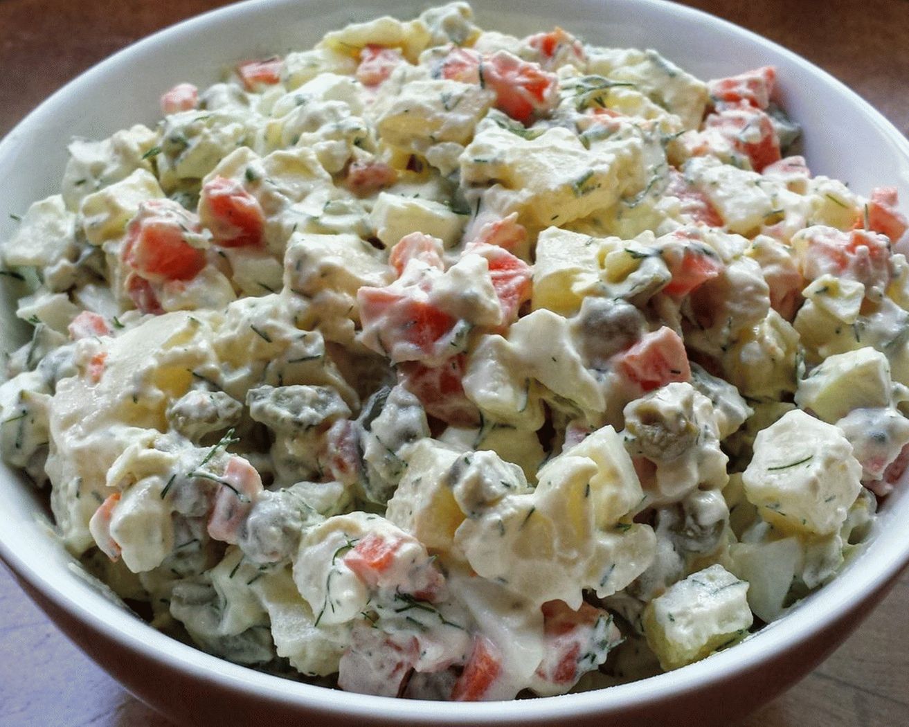 - Forraljuk a csirkét, lehűtjük, kockára vágjuk, sóval és bors.