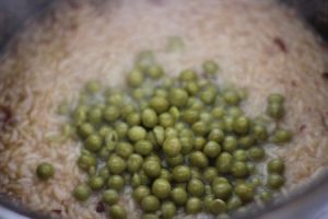 - 10 perccel a főzés megkezdése után adjunk hozzá zöldborsót.