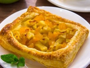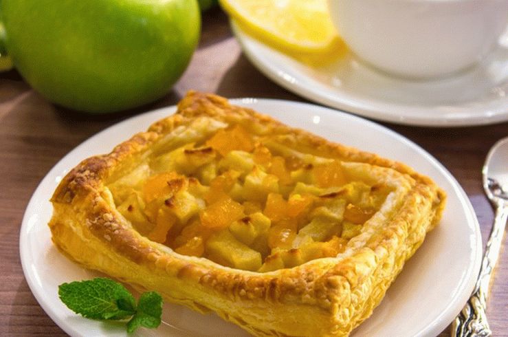 Ízletes és világos torták, ropogós tészta lédús töltelékkel. Leveles tésztából, frissen és frissen is készítheti őket otthon élesztő, az almákat jobb savanyúsággal venni.