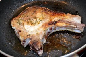 Vegyünk egy csontra lédús illatos szelet és tálaljuk sült cukkini és gomba.