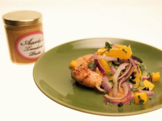 - Melegítsen növényi olajat egy serpenyőben, és megsütjük a csirkét körülbelül 7 perc mindkét oldalon készen áll. Ön is grill csirke. Vegye ki a csirkét a serpenyőből és öntsük ott 1 csésze maradék pác. Forraljuk fel enyhén. Adj hozzá mézet és kapcsolja ki a hőt. Keverjük össze a salátát olívaolaj, egy kis citromlé és só és bors ízlés szerint. Tálaljuk úgy, hogy minden csirkemellt felteszünk Zöldekre és meleg tandoori szósszal öntözzük.